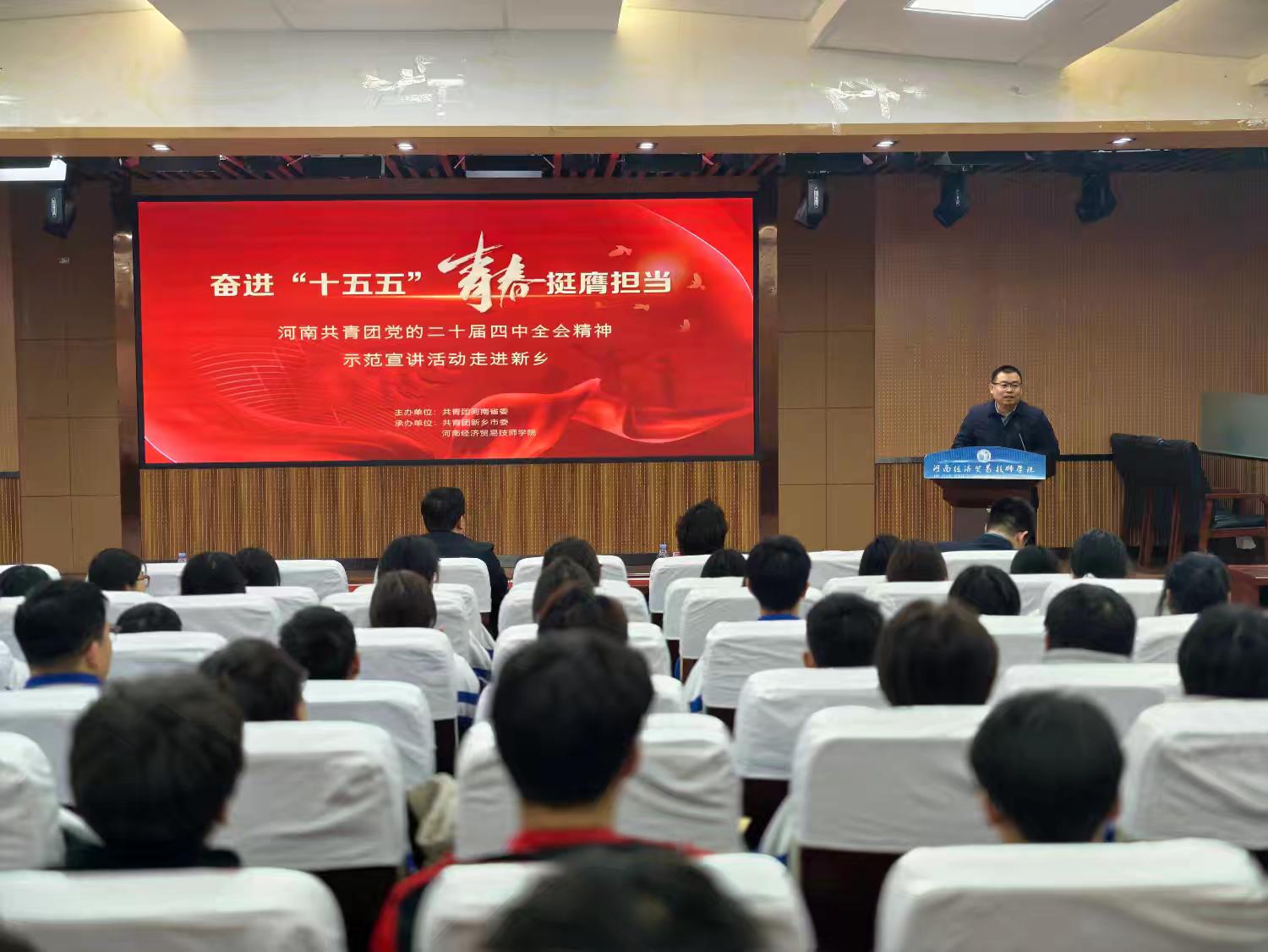 为深入学习贯彻党的二十届四中全会精神,认真落实团省委统一部署,引导广大青年切实把思想和行动统一到全会精神上来,12月19日下午,“奋进‘十五五’ 青春挺膺担当——河南共青团党的二十届四中全会精神示范宣讲活动”在新乡市河南经济贸易技师学院成功举办。