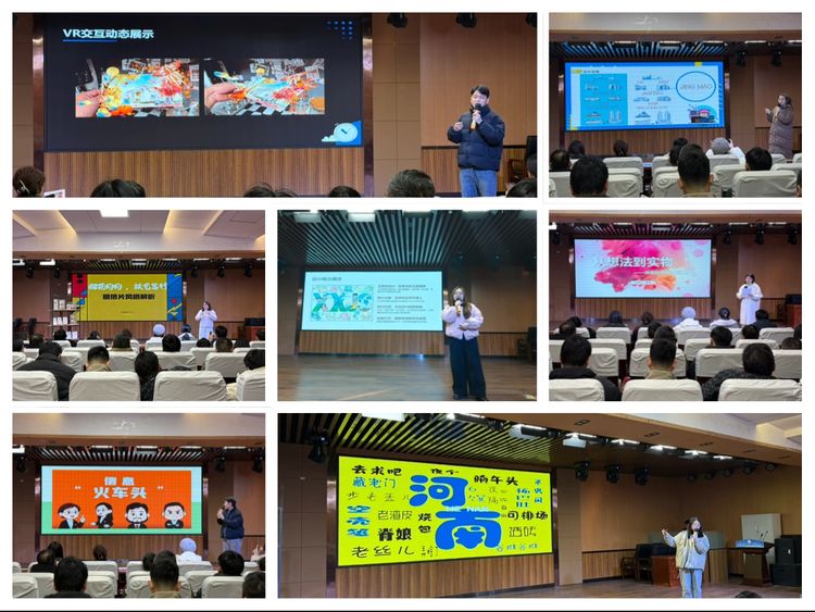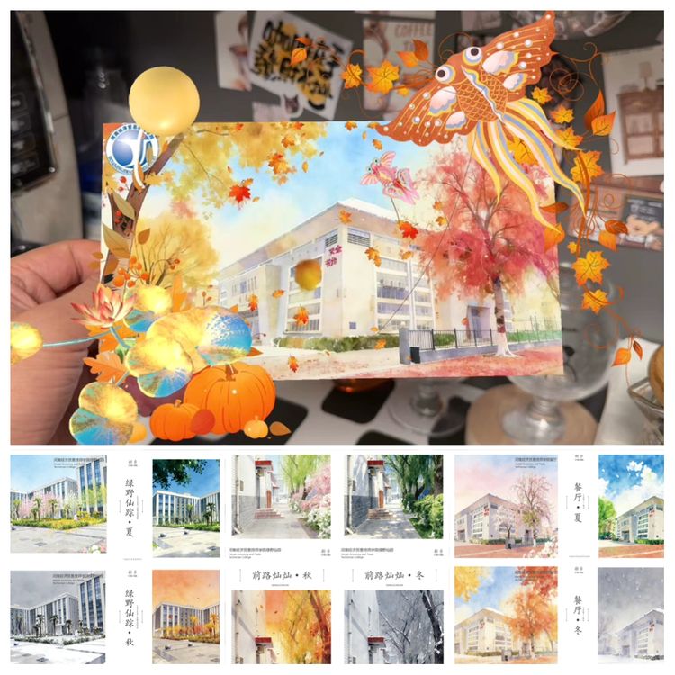 数字媒体技术专业组的教师团队率先展示。在备赛阶段凝心聚力打磨作品,从主题构思到细节落地反复推敲、协同攻坚。最终以一场融合创意巧思与硬核技术的作品秀惊艳四座!经贸四季主题明信片打破静态桎梏,扫码瞬间,春日繁花、夏日垂柳、秋日落叶、冬日雪花便在指尖灵动流转,复刻校园四季鲜活景致;两款冰箱贴各具特色,经贸专属款将校园地标与专业特色凝于方寸,满溢师生情怀,河南专属款嵌入方言元素,尽显地域风情;印着校园剪影的帆布包兼具颜值与实用,成为全场焦点。一件件作品构思精妙、制作精良,淋漓尽致展现了教师们的专业功底与创新思维。