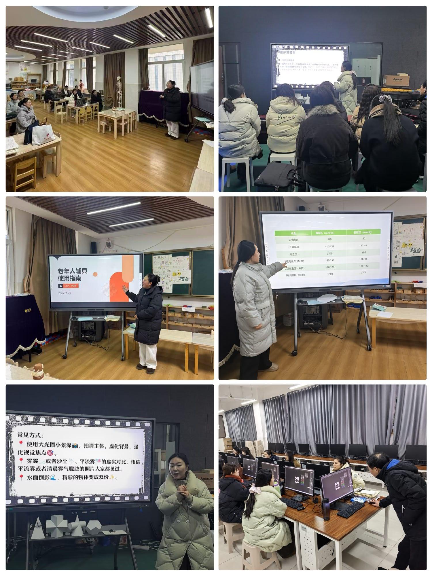 为提升教师专业技能,艺术教育系开展专项培训提升活动。影视表演与制作专业教研组聚焦专业核心需求,开展摄影基础和PS实操技能培训。健康与社会照护专业教研组围绕专业实操,开展《老年人常见病》课程及老年人能力评估师赛项培训,参训教师认真研习、积极交流,为提升教学质量和赛项突破打下坚实基础。