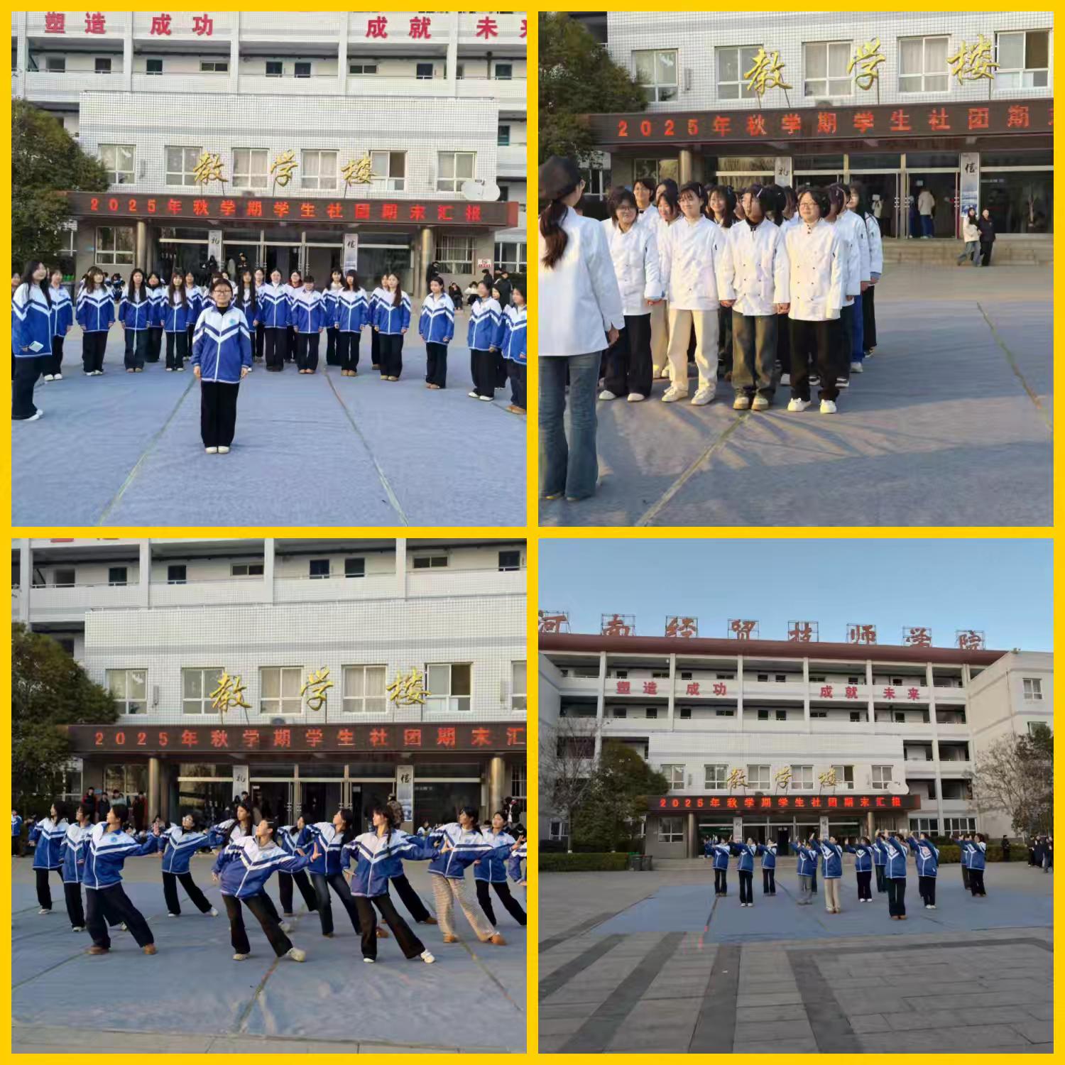 1月7日下午4:30,校园里洋溢着热情与活力。2号楼广场、运动场、实训室内,一场属于学生自己的社团盛宴——2025年秋学期学生社团期末汇报活动热烈开展。