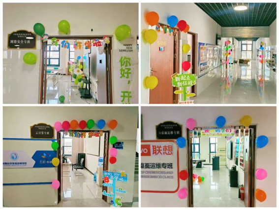 教学楼走廊同步换装:柔和暖光与科技元素交织,欢迎标识随处可见。一步入内,便能感受“未来已至,亦含温度”。