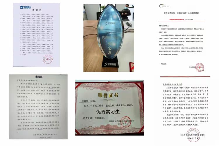 因项目贡献突出,获多家名企、央企感谢信,并荣膺“攻防先锋”奖杯。