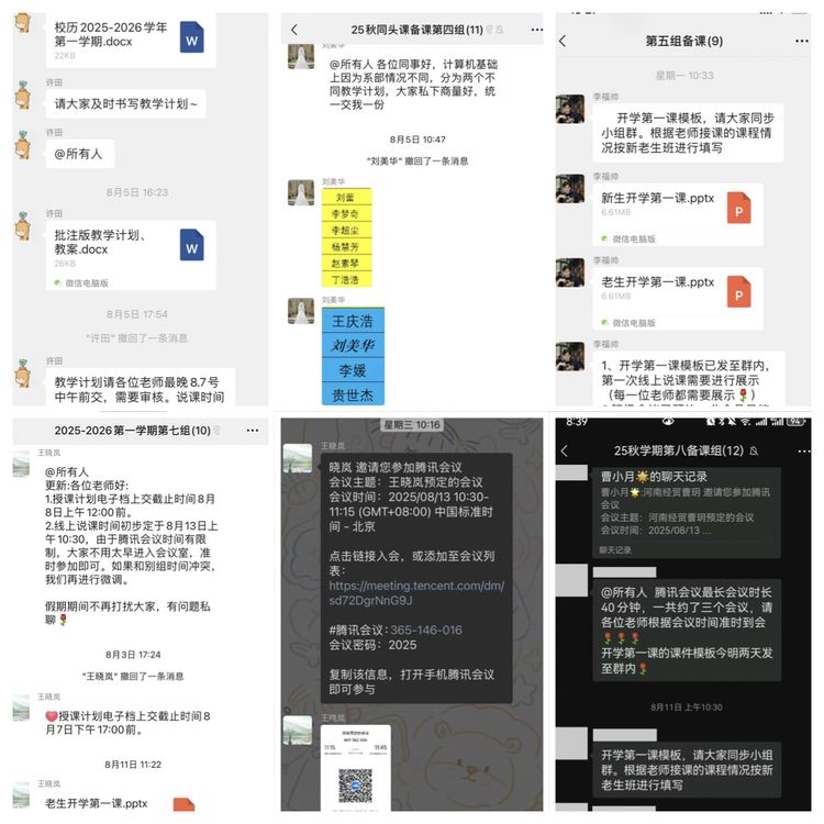 信息技术系为提升教师教学能力,结合国赛特殊情况,制定同头课备课方案:要求课程在计划、进度、教案(含PPT及素材)、案例、考评五个维度统一,由资深教师带组分两阶段推进——开学前线上研讨完成第一、二周备课,8月18-29日线下集中打磨第三、四周内容,实现质量把控。